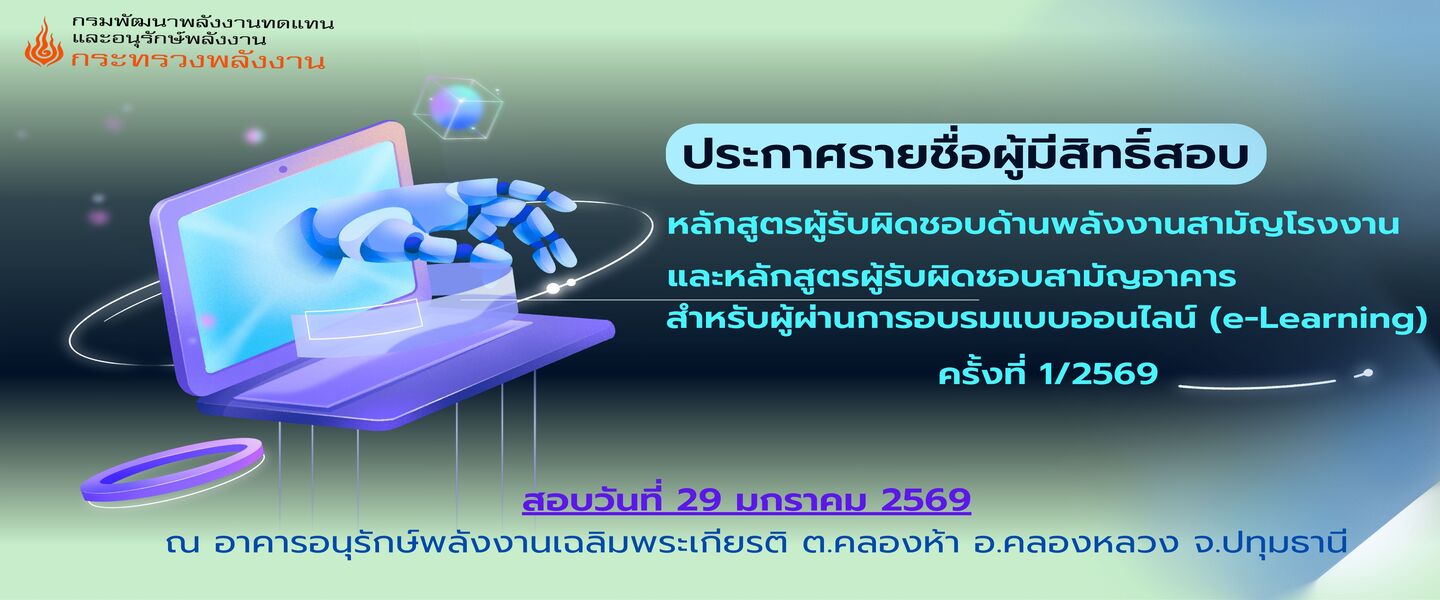 ประกาศ กรมพัฒนาพลังงานทดแทนและอนุรักษ์พลังงาน เรื่อง การยื่นคำขอขึ้นทะเบียนหน่วยงานฝึกอบรมด้านพลังงาน ประจำปี พ.ศ. 2566