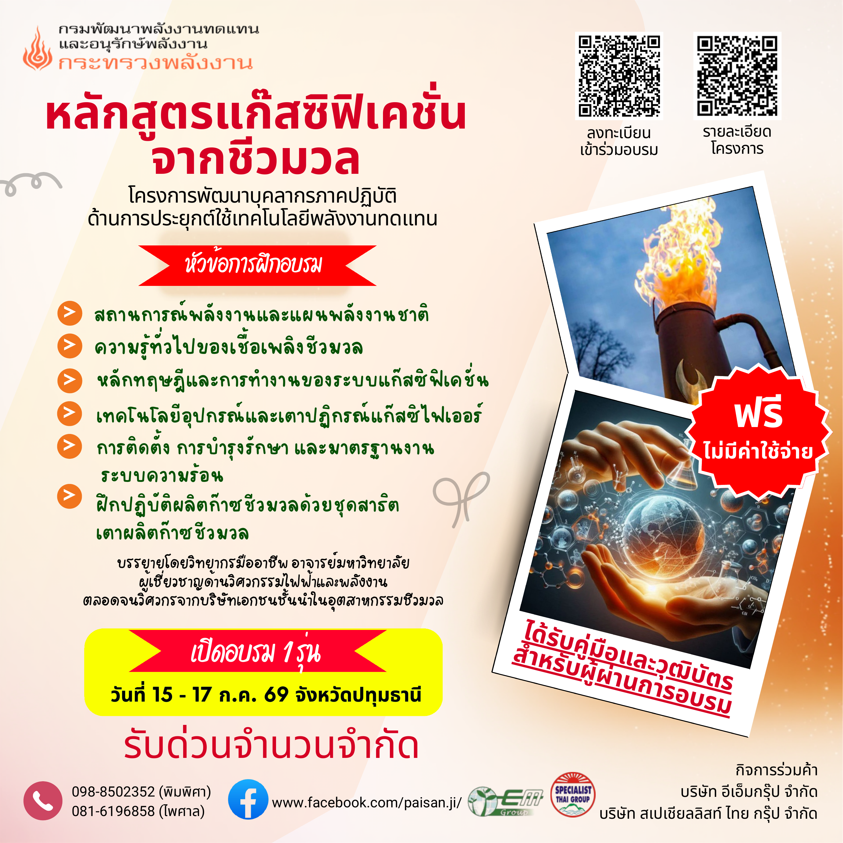 หลักสูตร หลักสูตรแก๊สซิฟิเคชั่นจากชีวมวล และการใช้ประโยชน์จากชีวมวล